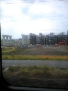 博多から熊本までのリレーつばめの車中からは至る所で九州新幹線の工事の様子が見えた。